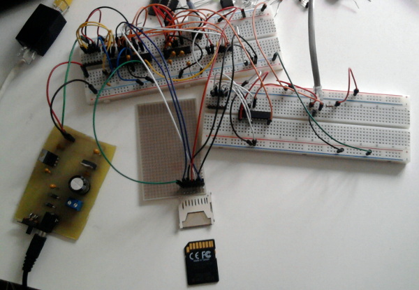 Karta komunikuje prostřednictvím SPI. Na obrázku níže je vidět připojení slotu karty - 7 vodičů zleva doprava jsou postupně: ChipSelect (CS), DataIn (DI), Zem, Napájení 3.3 V, SerialCLocK (SCLK), Zem, DataOut (DO).