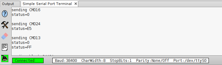 sendSerialString("\nsending CMD16\n");