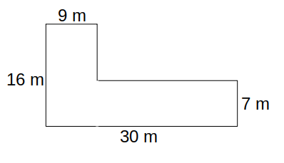 Plocha pozemku je $30*7+9*(16-7)=210+81=291$ $m^2$. Na tuto plochu budu potřebovat ${291}/{16}*2={291}/8=36+3/8=36.375$ kilogramu travního osiva.